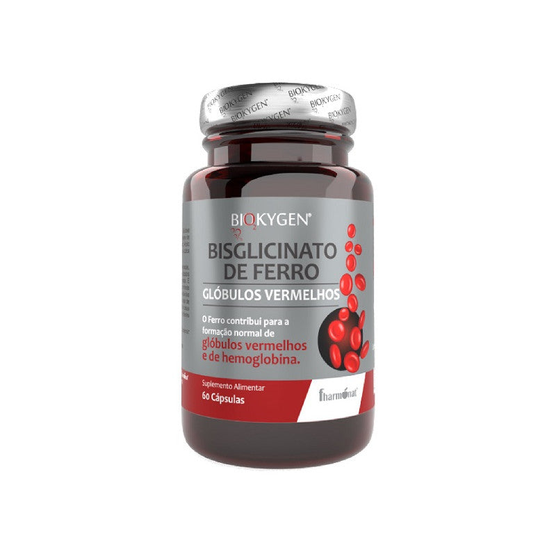 FHARMONAT Biokygen Bisglicinato de Ferro é um suplemento alimentar que fornece Ferro na sua forma quelada de Bisglicinato. Esta é uma das formas de Ferro mais biodisponíveis e mais suaves para o estômago, minimizando os efeitos secundários gastrointestinais (como obstipação) frequentemente associados a outras formas de Ferro.